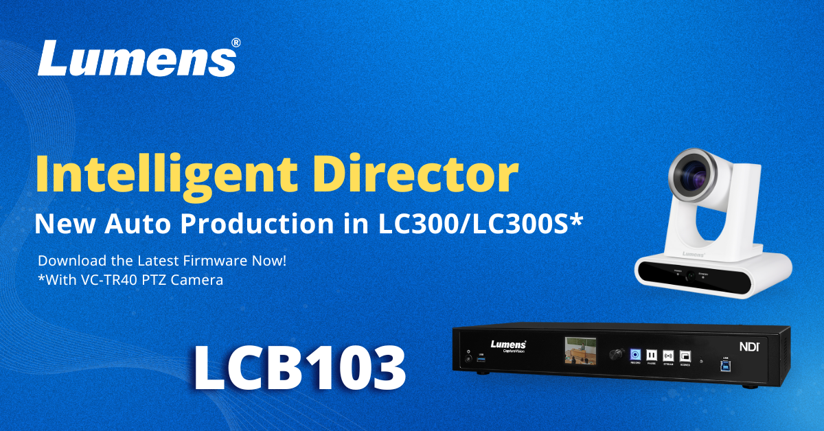 Die AI-betriebene LC300/LC300S arbeitet mit den Lumens VC-TR40-Tracking-Kameras zusammen, um eine Produktion aus mehreren Blickwinkeln zu erstellen, ohne dass ein Videoteam erforderlich ist.