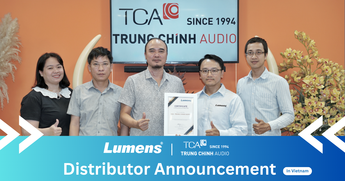 Hsinchu, Taiwan, September 30, 2025 – Lumens® Digital Optics Inc., a leading brand in ProAV solutions, today announced an exclusive distribution agreement with Trung Chính Audio Co., Ltd (TCA). TCA will distribute all Lumens’ product lines in Vietnam, including CamConnect Pro, 4K PTZ cameras, motion-tracking and auto-framing cameras, IP transmitters and decoders.
