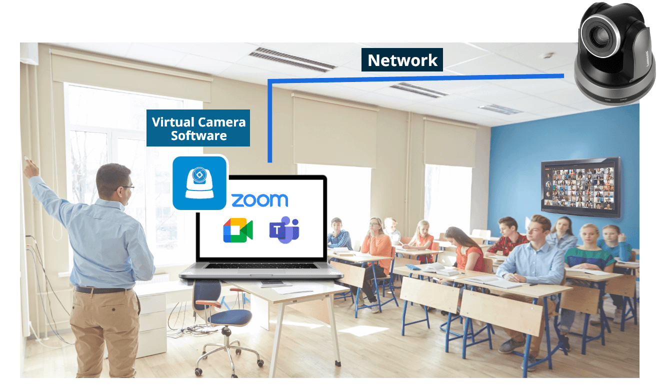 Zoom, Google Meet und Microsoft Teams lassen sich problemlos mit USB-Kameras kombinieren. Leider verlassen sich die meisten USB-Kameras auf feste Objektive und sind für Aufnahmen aus 1-2 m Entfernung optimiert. Es fehlen auch Robotermechanismen, die nützlich sind, um die perfekte Aufnahme zu gestalten. Viele professionelle Videokameras sind mit Ethernet-, SDI- und HDMI-Anschlüssen ausgestattet, so dass USB-Konverter-Geräte als Zubehör für Videokonferenzen hinzugefügt werden müssen. Ein HDMI-auf-USB-Adapter funktioniert gut, ist aber teuer und durch die Länge der USB- und HDMI-Kabel begrenzt.