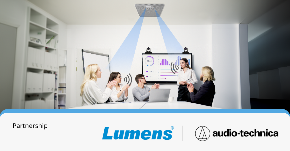 Lumens CamConnect Pro enables intelligent voice-based camera tracking and switching by integrating with Audio-Technica microphone systems.
