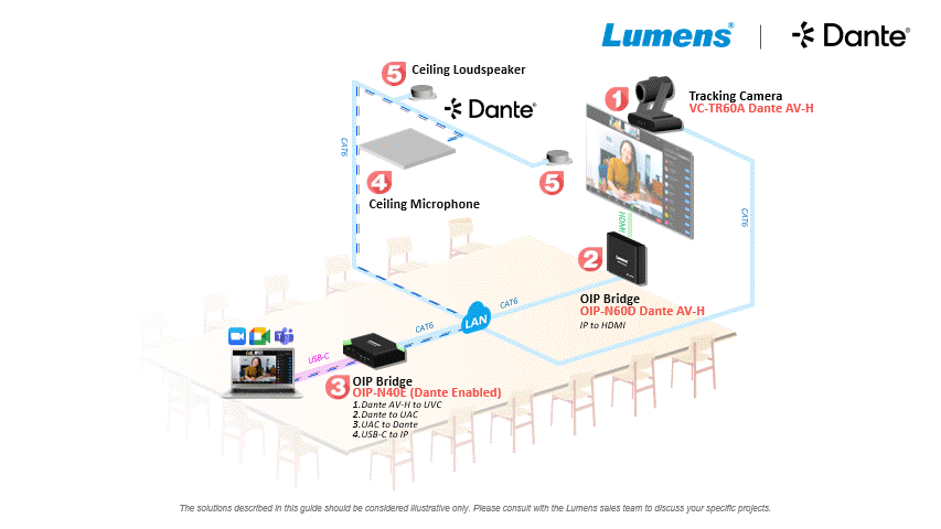 2. Dante-Enabled Audio: Seamlessly integrates professional Dante microphones and speakers within a unified IP-based architecture.